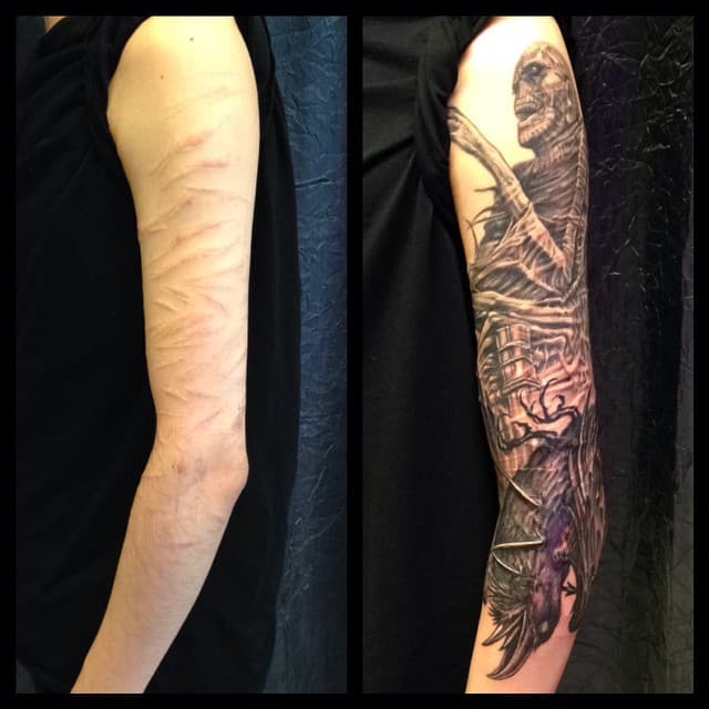 I'd wait for at least three months to begin the sleeve tattoo process on the arm in general (excluding the scar!), and start tattooing over. As a professional plastic surgeon with. For patients undergoing extensive arm surgery, a sleeve tattoo design can provide an excellent way to conceal scars while also. Are you considering an arm lift scar tattoo to.