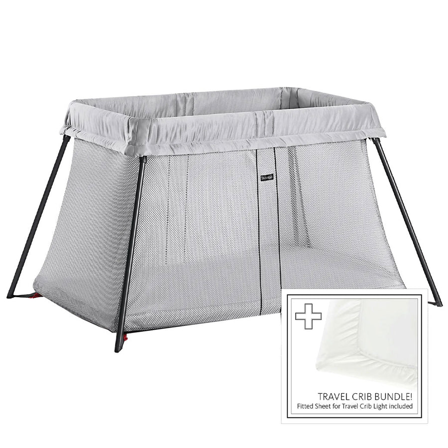 BABYBJORN Travel Crib Light Silver + Fitted Sheet Bundle