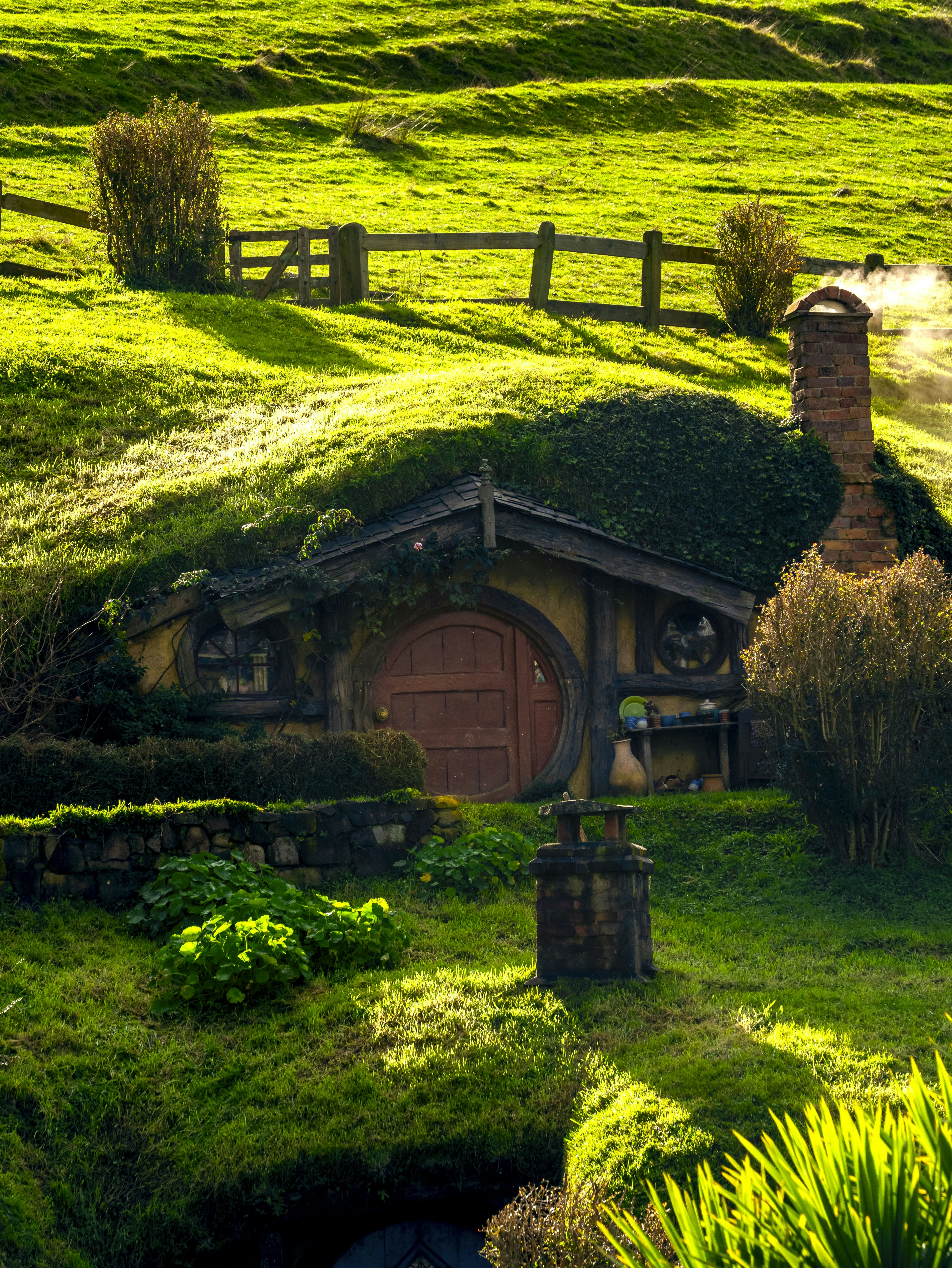 Una casa hobbot in un lussureggiante campo verde foto Immagine gratis