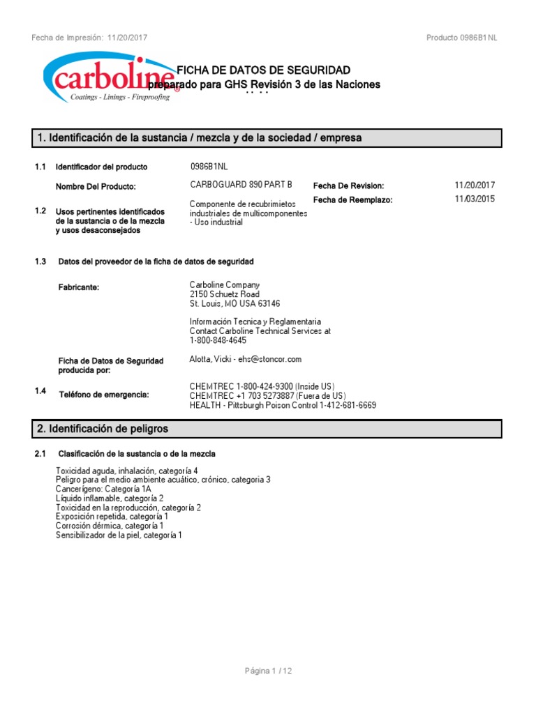 Carboguard 890 Part B GHS SDS Spanish 11202017 PDF