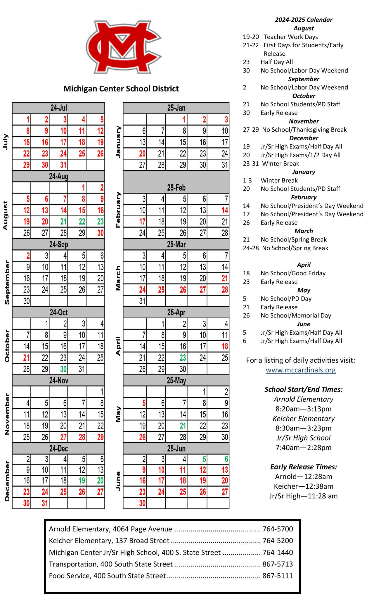20242025 Michigan Center Schools Calendar Michigan Center SD