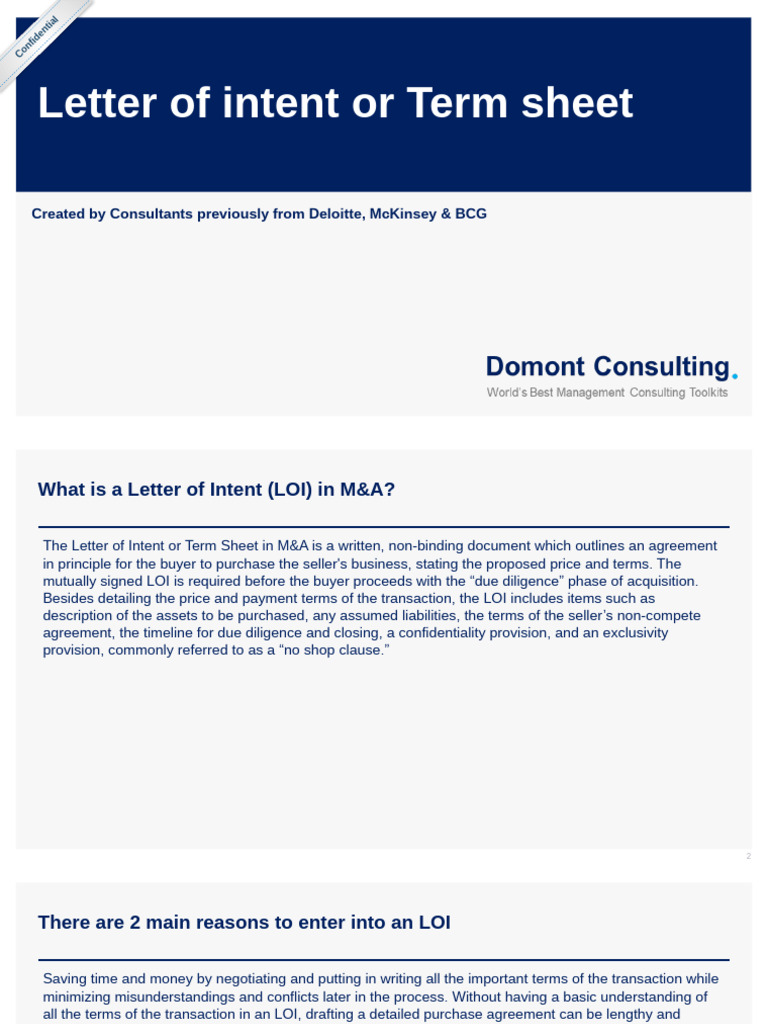 On the other hand, a letter of intent (loi) serves as a formal declaration of an intention to proceed with a transaction or agreement. A letter of intent is, as its name suggests, often prepared in the form of a letter. The structural formats of an loi and a term sheet tend to differ.