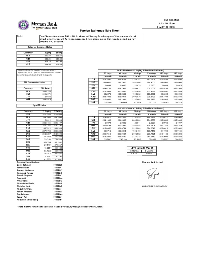 Rate Sheet PDF Exchange Rate Money