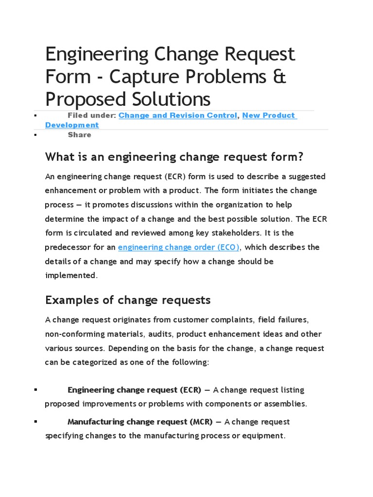 Covers everything from scope and impact to approvals. We’ve gathered the best change request form templates for documenting your project’s change requests and approvals. Streamline your change management with this engineering change request form template. Engineering change request forms are used to document any proposed changes to an engineering design, system, or process.