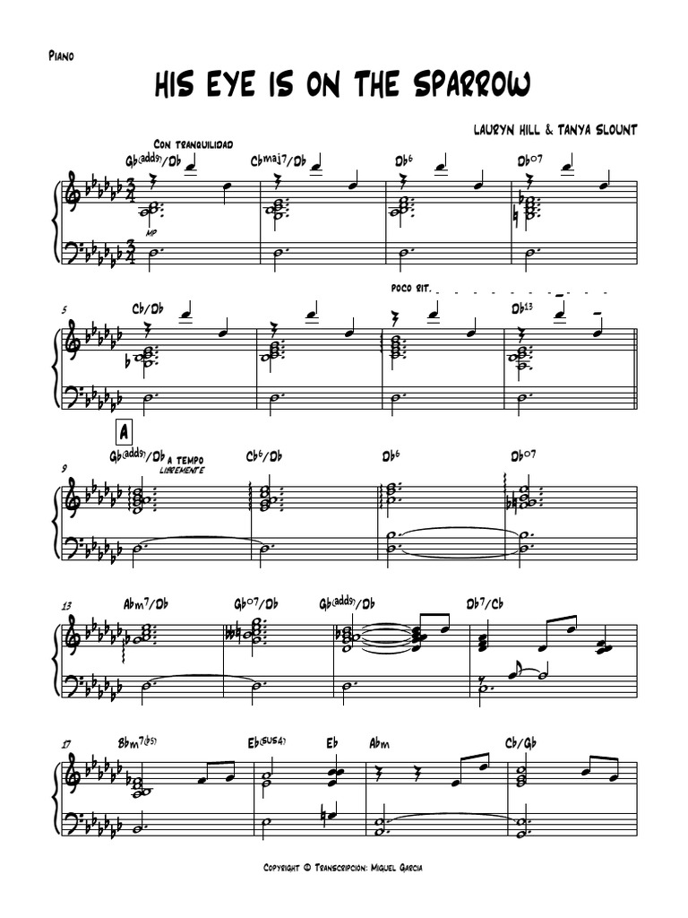 Free Lead Sheet His Eye Is On The Sparrow Michael Kravchuk