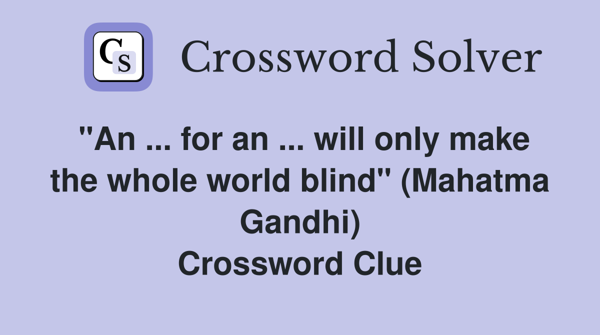 Today's crossword puzzle clue is a quick one: We will try to find the. There is one answer total,. The crossword solver found 30 answers to holy person like gandhi(7), 7 letters crossword clue. Please find below the like mahatma gandhi crossword clue answer and solution which is.