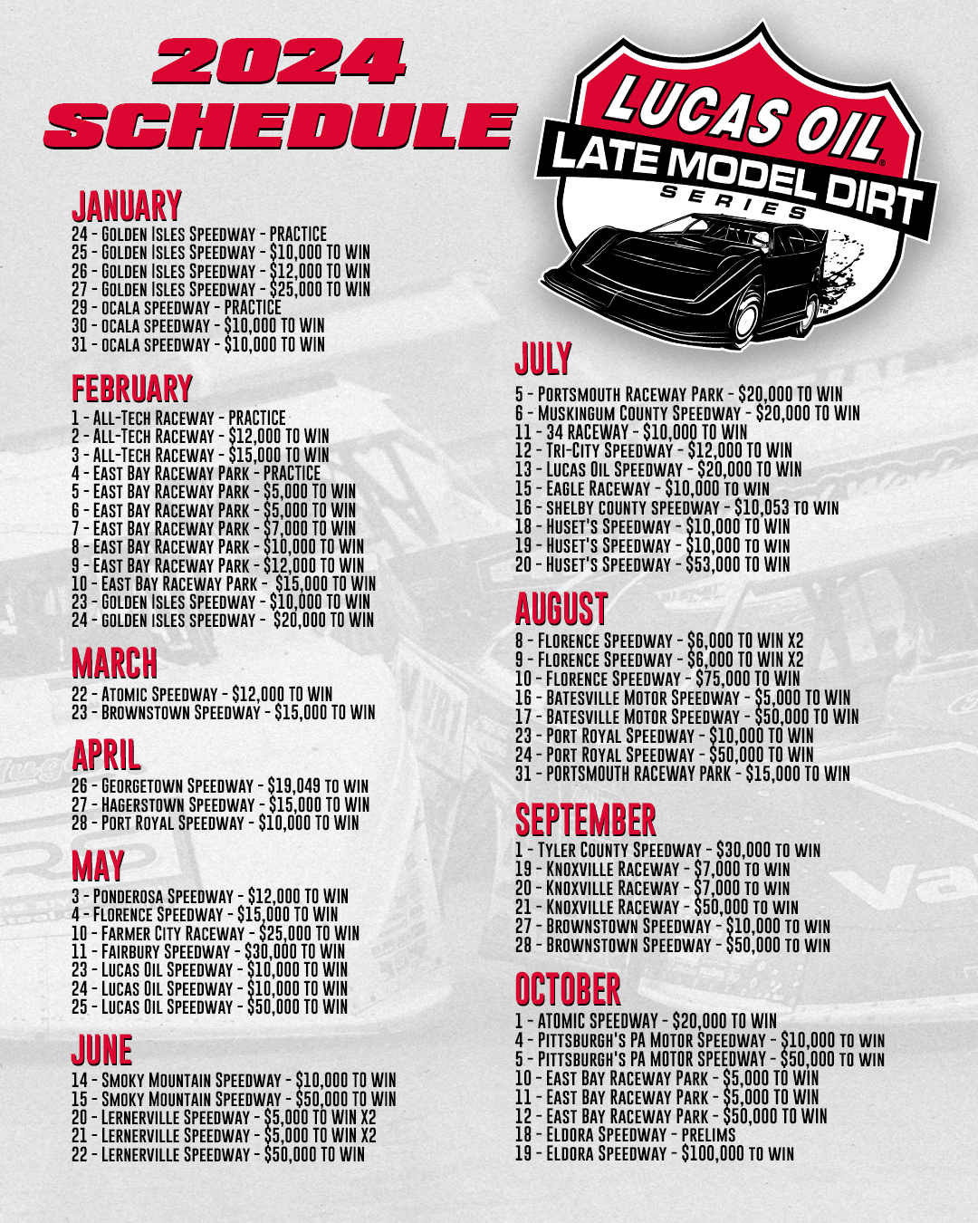 Lucas Oil 2024 Schedule Reeba Catlaina