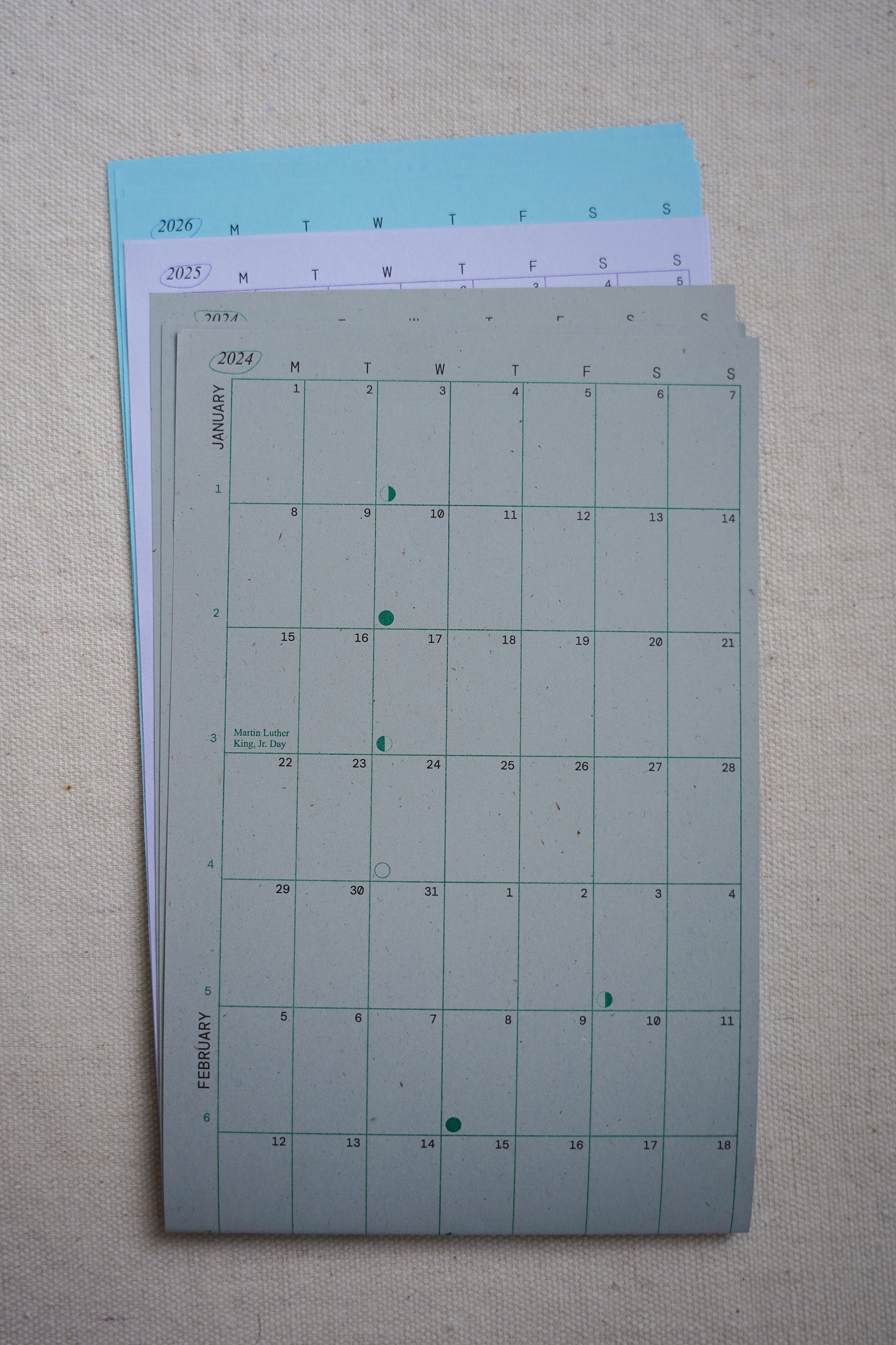 A major undertaking of design, printing and production. 11x17 risograph print with fluorescent orange and kelly green ink! Back for the second year, we’re making a dated planner! Create your own customized calendar for 2025, 2026, and 2027 then download it.