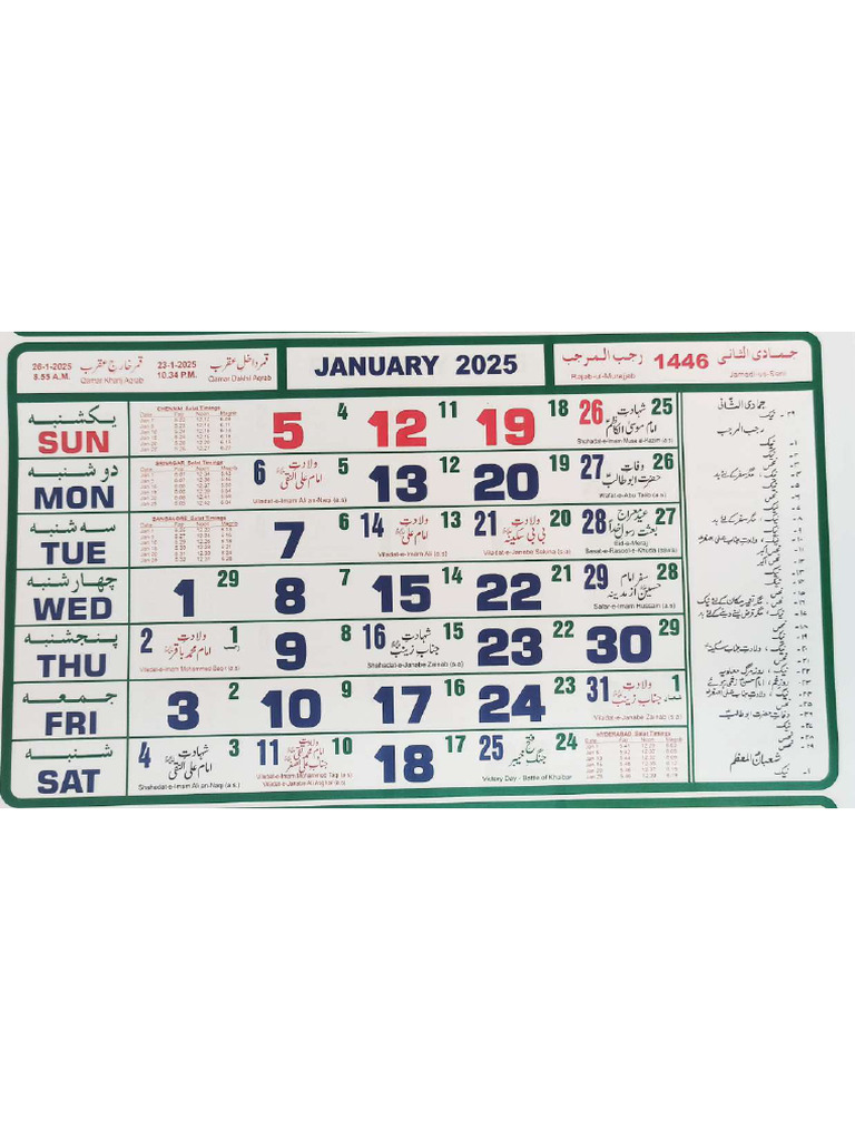 2025 Shia Islamic and English Calendar Etsy