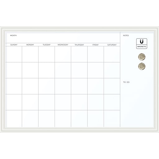 U Brands Dry Erase Calendar Whiteboard, 30" x 20", White Decor