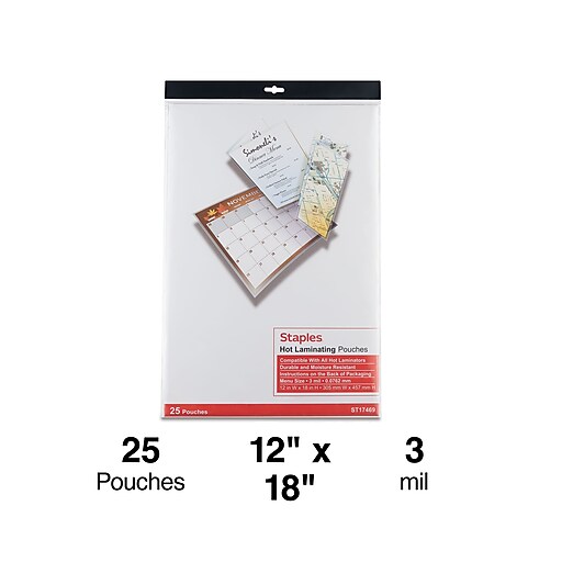Staples Thermal Laminating Pouches, Menu, 3 Mil, 25/Pack (5201102/