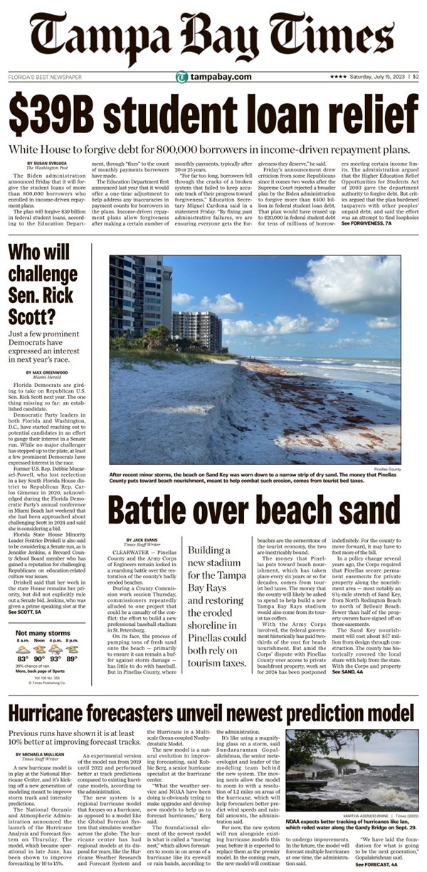 The Tampa Bay Times turns 135 today. Here are our most iconic front